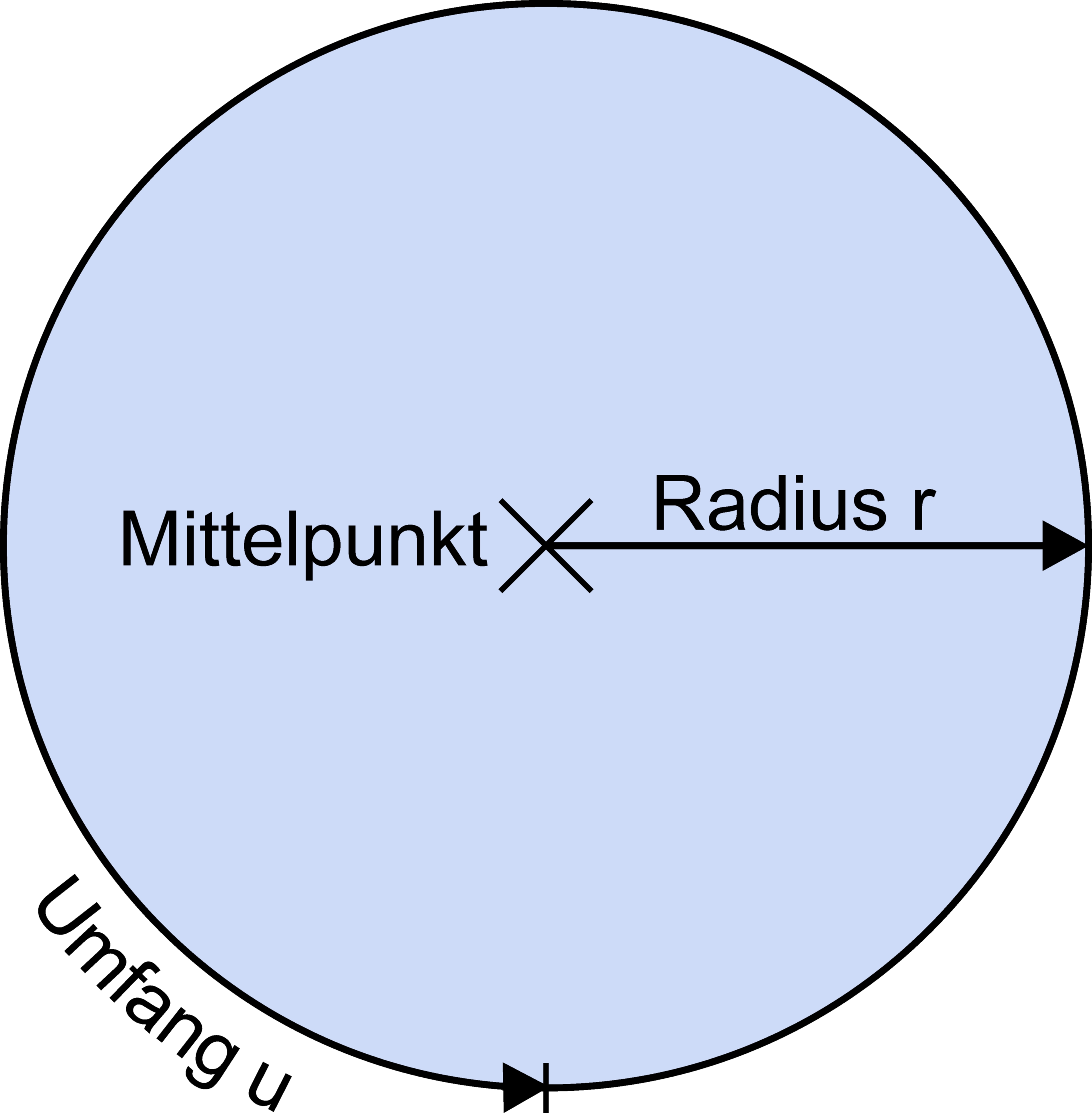 Der blau eingefärbte Bereich des Kreises ist seine Fläche.