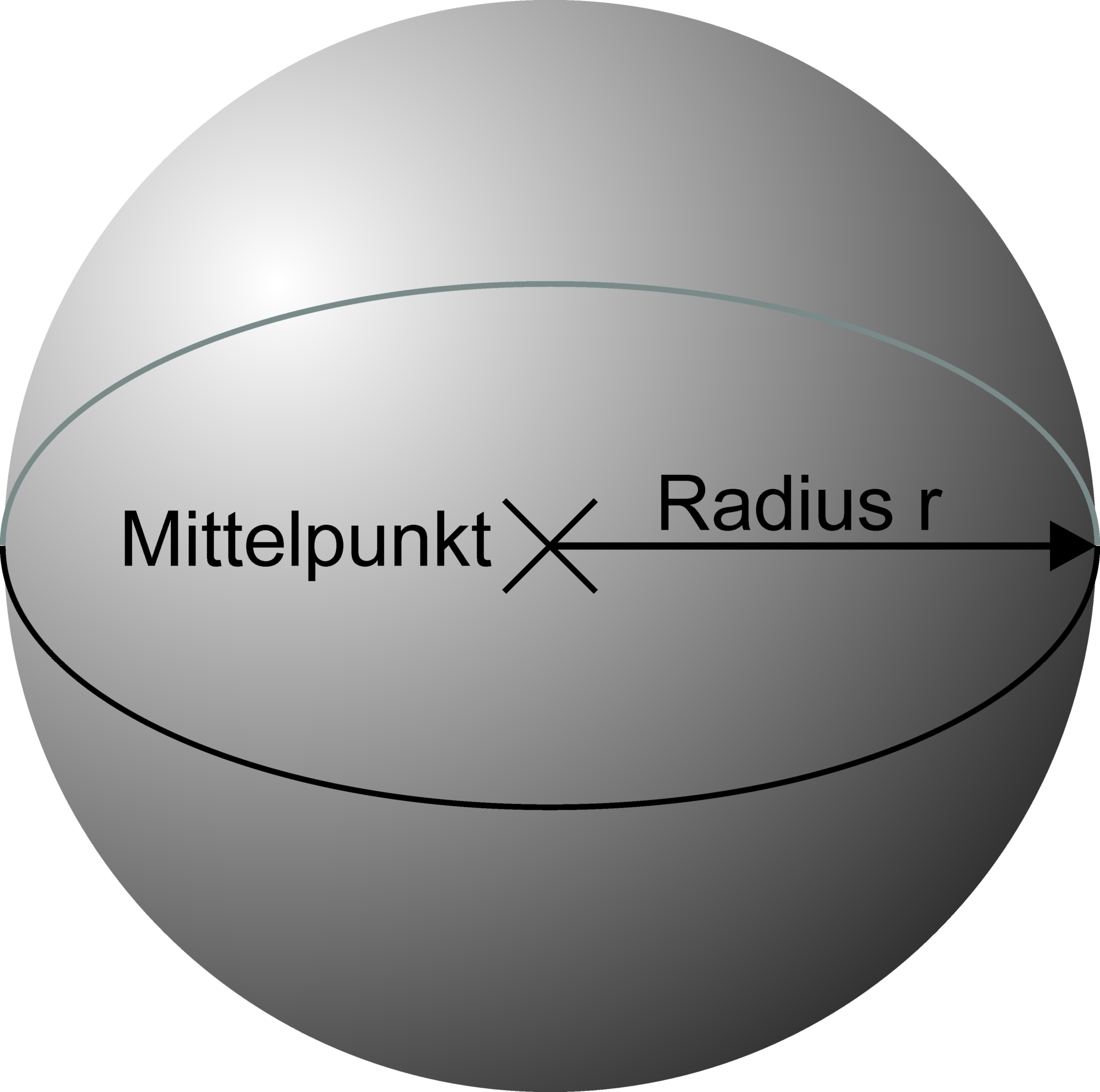 Anmerkung: Eine Kugel hat auch eine Oberfläche, die wir mit Farbe anmalen könnten. Sie hat auch Längen: Den Radius und den Umfang.